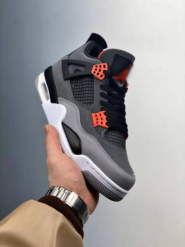 La parte superior está confeccionada con nubuck suave con un acabado color carbón. Un tono más claro de gris distingue la capa del antepié, mientras que los detalles en negro aterrizan en la red del panel lateral. El tono titular de la zapatilla ilumina la etiqueta de la lengüeta tejida y un cuarteto de ojales moldeados. Una entresuela de poliuretano incluye amortiguación Air-sole visible en el talón para una pisada suave. Ponte estas Air Jordan 4 Infrared y deja que hablen por sí mismas.