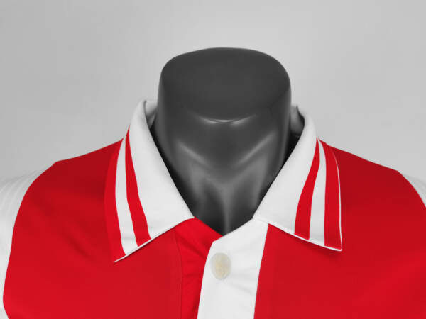 Presenta el emblemático diseño blanco con franja roja central que ha identificado históricamente a AFC Ajax.