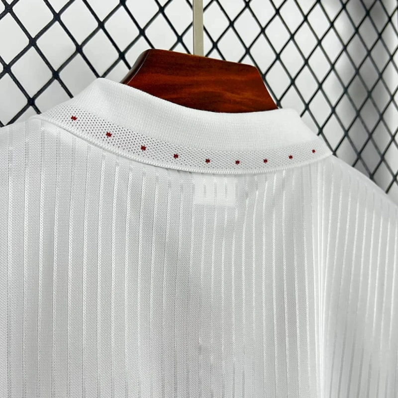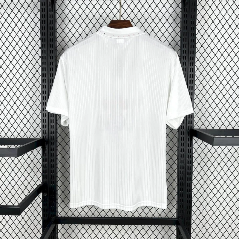 Confeccionada en color blanco como base predominante ⚪, incorpora detalles en rojo en el cuello tipo polo, las mangas y el logo del patrocinador, respetando el estilo original de la temporada 94/95 🔴.