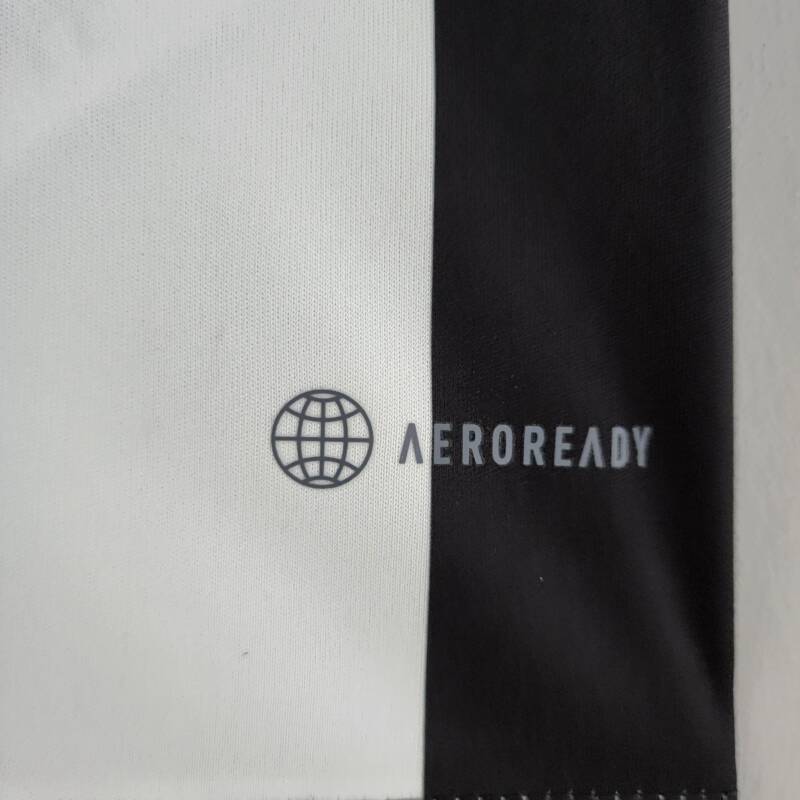 Esta camiseta es mucho más que una simple prenda deportiva. Su diseño de rayas verticales en blanco y negro, con el logo de la marca y el escudo bordado en el pecho con su estrella encima, hace que resalte en cualquier lugar y demuestres tu amor por el equipo. Pero eso no es todo, la camiseta también cuenta con el patrocinador del equipo, lo que la hace aún más auténtica y única.