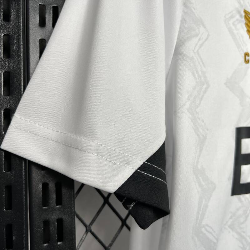 La Camiseta Bayer Leverkusen Visitante 2024-2025 destaca con un diseño audaz que captura la esencia del club. Confeccionada en blanco con rayas en zig-zag en gris claro, esta camiseta combina sofisticación y rendimiento para ofrecer una prenda elegante y funcional.