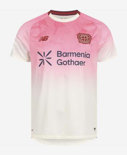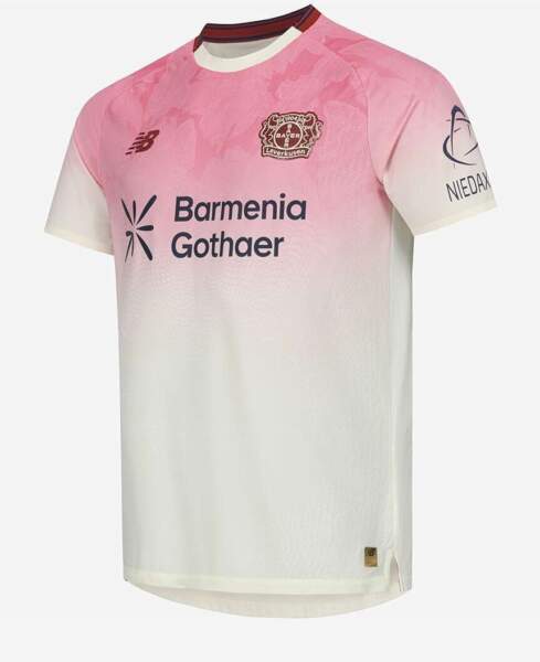 La Camiseta Visitante 2025/2026 del Bayer 04 Leverkusen destaca por su elegante diseño degradado en tonos rosados y blancos, combinando estilo moderno, comodidad y la identidad del club alemán.