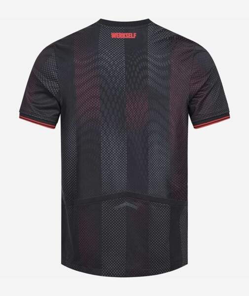 Inspirada en la identidad del Bayer Leverkusen, esta camiseta presenta un elegante color negro con detalles en rojo que reflejan la tradición y fuerza del equipo.