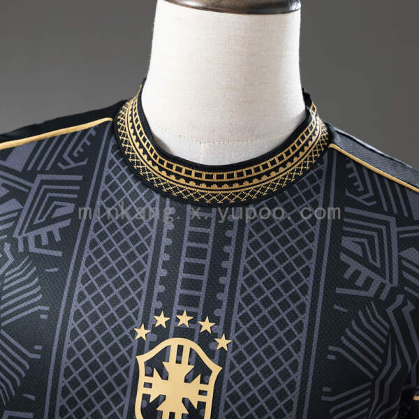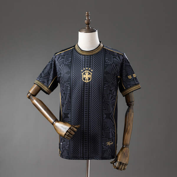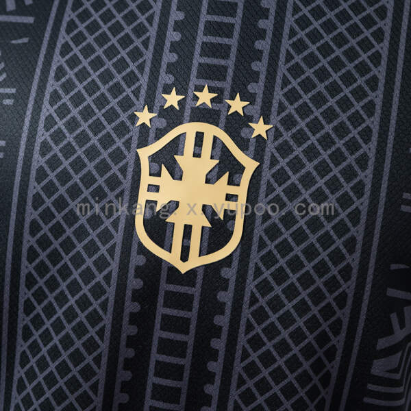 El tono negro profundo transmite autoridad y sofisticación, convirtiendo esta camiseta en una pieza única dentro de las ediciones de Brasil.