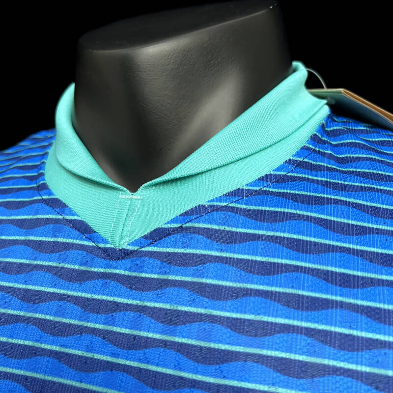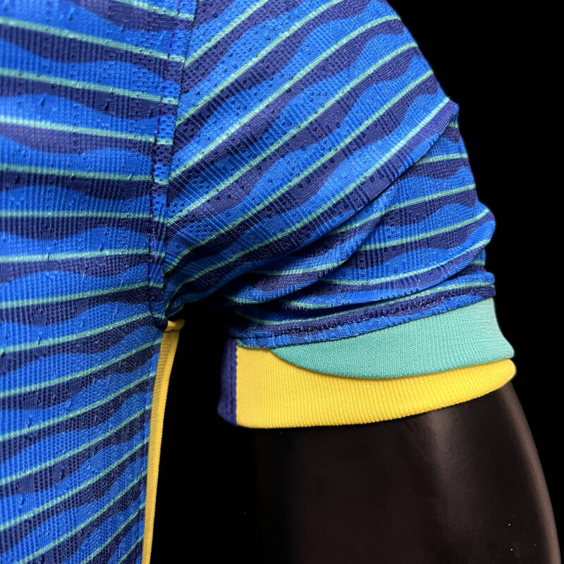 La segunda camiseta Brasil Copa América 2024 es una verdadera obra maestra de la elegancia deportiva, presenta el emblemático escudo de la CBF en el pecho izquierdo, mientras que en la parte derecha luce el logo oficial de la Copa América, simbolizando la unión entre el equipo y el prestigioso torneo.