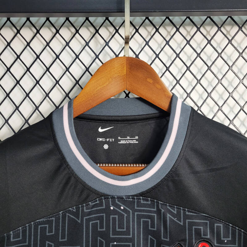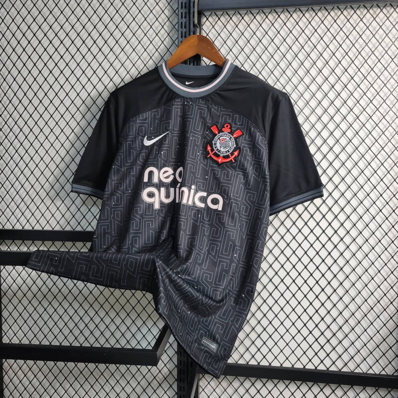 La Camiseta Corinthians Visitante 2023/2024 es la prenda perfecta para lucir tu amor por el equipo. Con un diseño clásico de bastones negros y finas líneas blancas, esta camiseta es la combinación perfecta de estilo y comodidad.