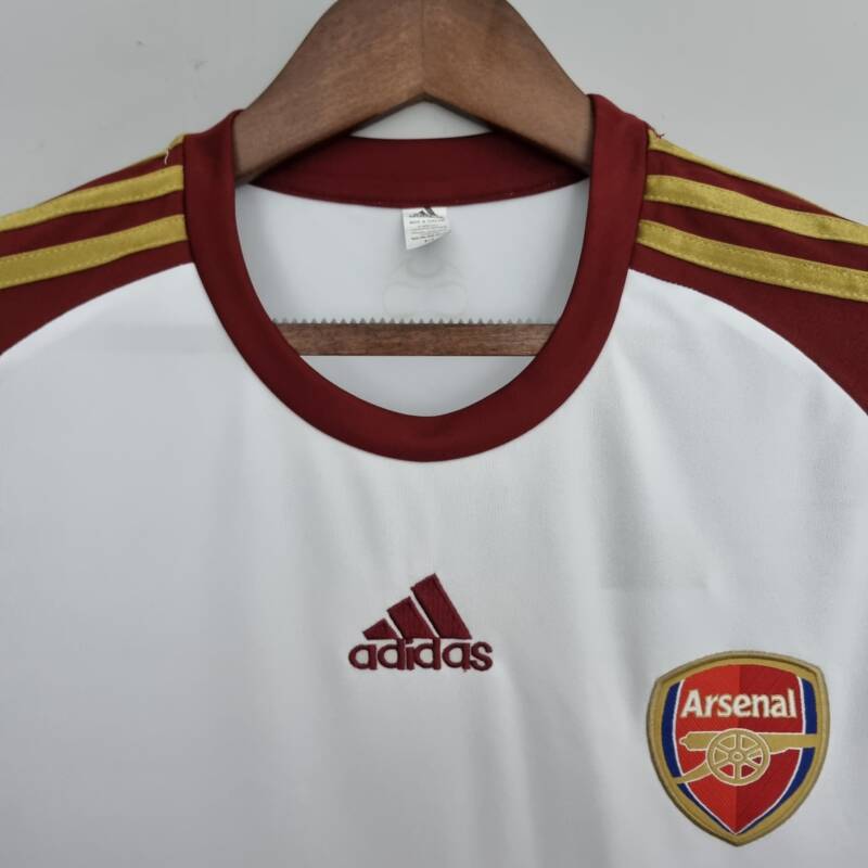 Camiseta Arsenal visitante retro 2007/2008 en color blanco con detalles granate y el icónico patrocinio Fly Emirates del histórico Arsenal FC.