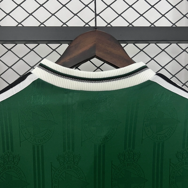 Con su diseño verde con detalles blancos, manga larga, cuello polo y el escudo bordado, esta camiseta es una réplica precisa de la que usó el Dépor campeón en 1999-2000.