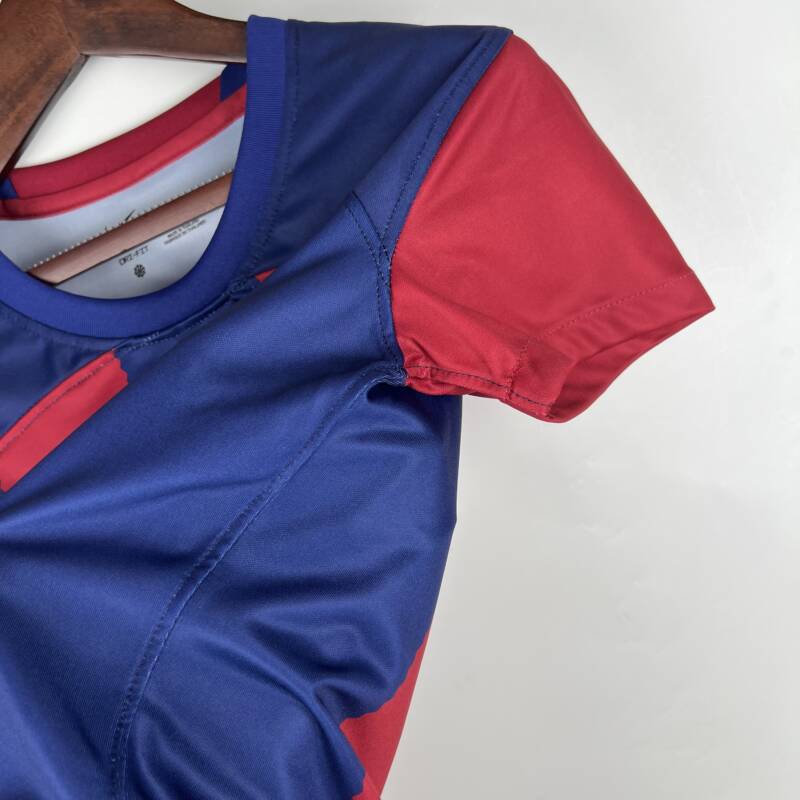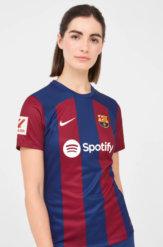 La Camiseta FC Barcelona primera equipación 2023/2024 para mujer es la prenda perfecta para las verdaderas aficionadas culés. Su diseño impecable combina los colores icónicos del club.