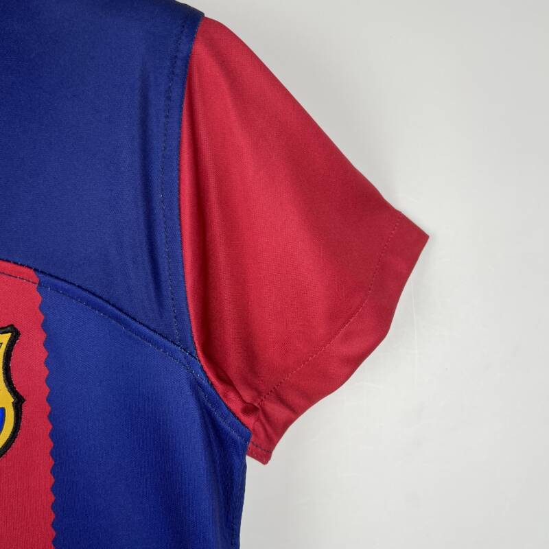 La Camiseta FC Barcelona primera equipación 2023/2024 Niño Kit es el regalo perfecto para compartir la emoción del juego y demostrarle a tu pequeño campeón el verdadero significado de ser parte de la familia culé.