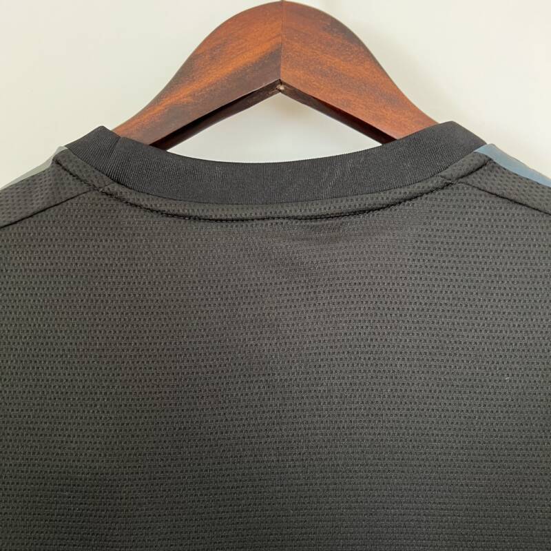 El color predominante es el negro, que le otorga una elegancia y sobriedad únicas. Sin embargo, lo que realmente hace que esta camiseta de edición especial se destaque son los detalles en gris que decoran los laterales y el borde inferior. Estos elementos añaden un toque de modernidad y estilo al diseño. Pero eso no es todo. Lo que hace que esta camiseta sea aún más especial son las tres tiras y el logo del club. Estos elementos llevan un efecto iridiscente que se caracteriza por variar sus colores según la luz.