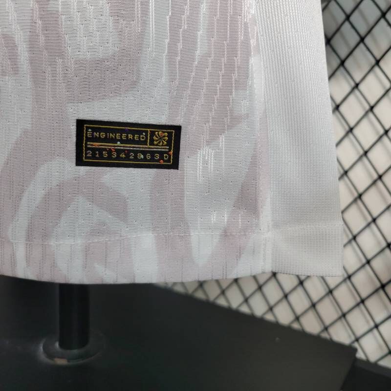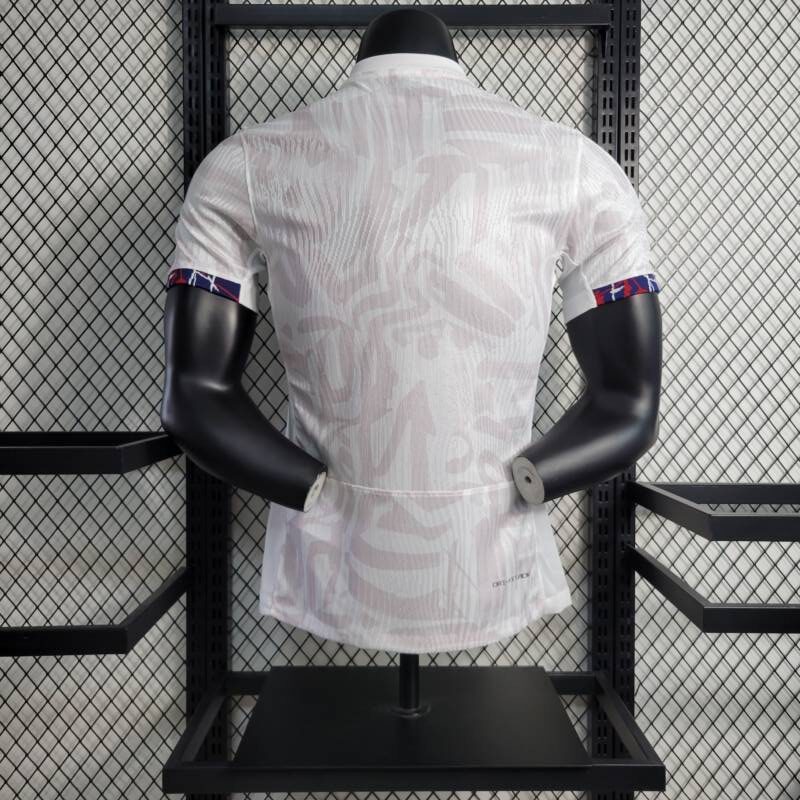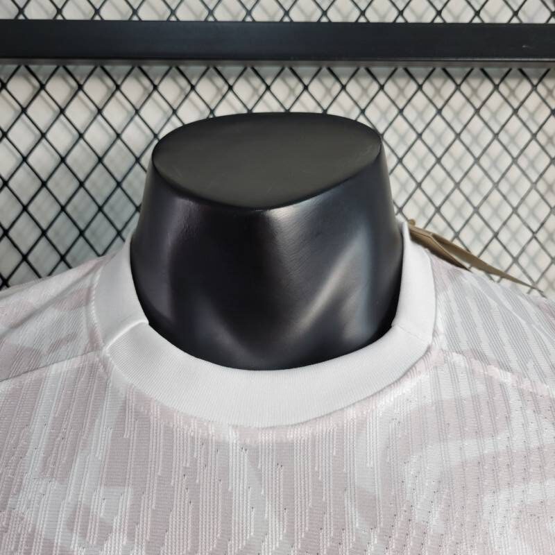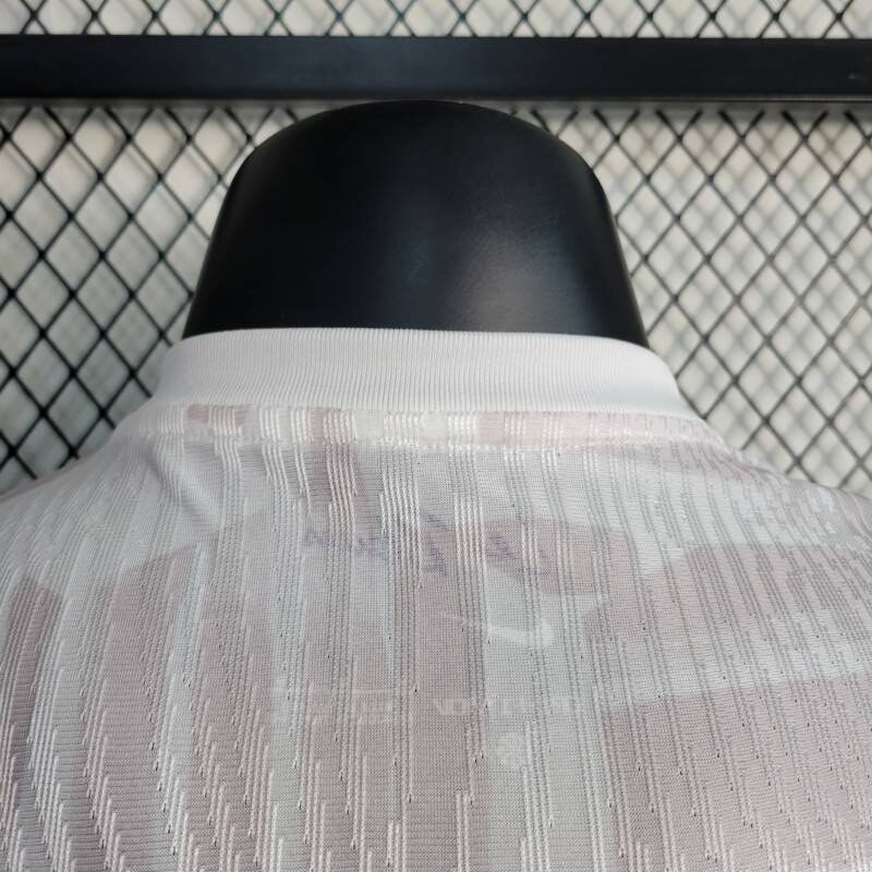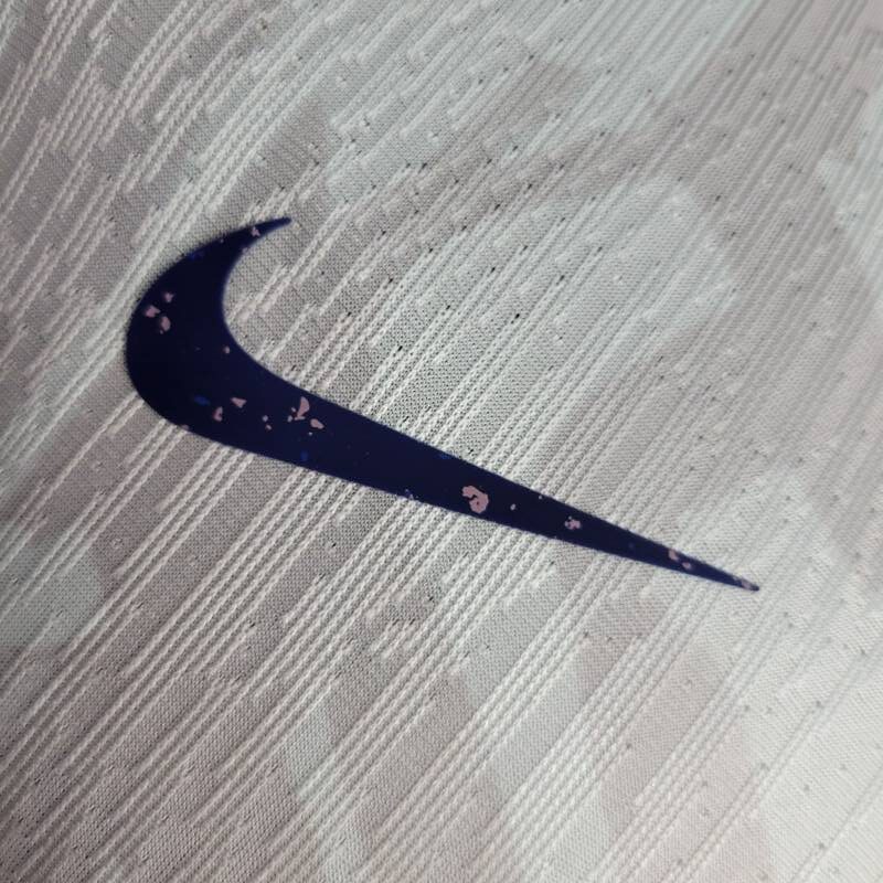 Su tonalidad principal, el blanco puro, simboliza la pureza de la pasión por el juego. Los bordes del cuello en blanco agregan un toque de sofisticación, mientras que los bordes de las mangas en un audaz azul añaden dinamismo y energía. Los gráficos imperativos a lo largo de la camiseta capturan la determinación del equipo y su búsqueda incansable de la grandeza. Además, los detalles en blanco tenue complementan perfectamente el conjunto, añadiendo un toque de elegancia sutil.