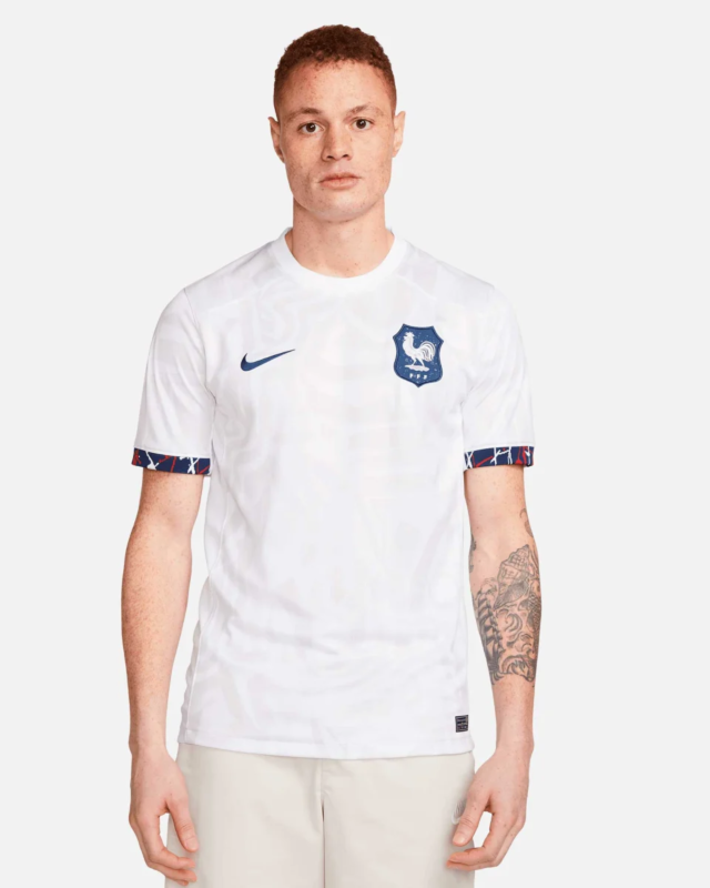 «Vive la grandeza del fútbol con la Camiseta Francia Segunda Equipación 2023/2024. La esencia del equipo campeón plasmada en cada fibra. Haz tuya esta obra maestra y lleva contigo la pasión de Francia en cada partido. Camiseta Francia 2024: ¡Juega con estilo, juega con pasión!»