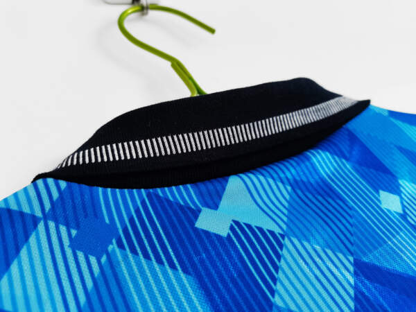 Presenta un patrón único en tonos vibrantes que refleja la innovación estética de los años 90, diferenciándose completamente de las equipaciones tradicionales.