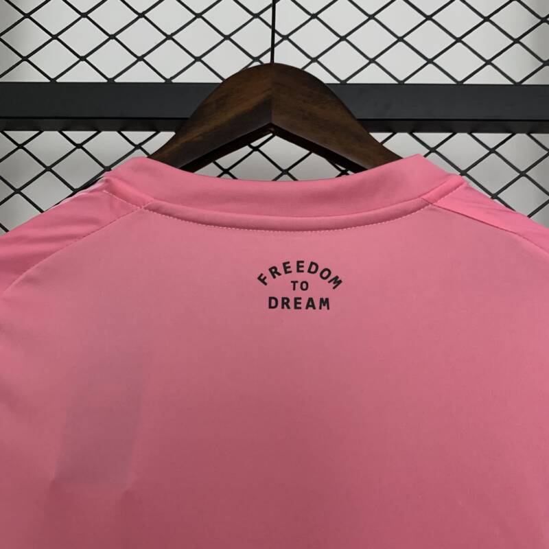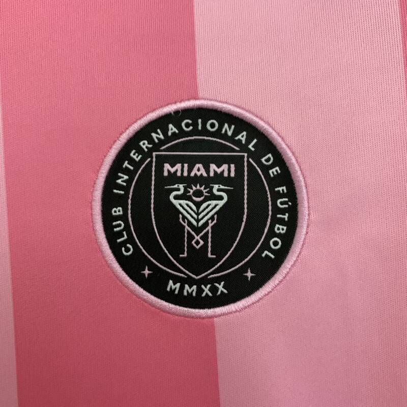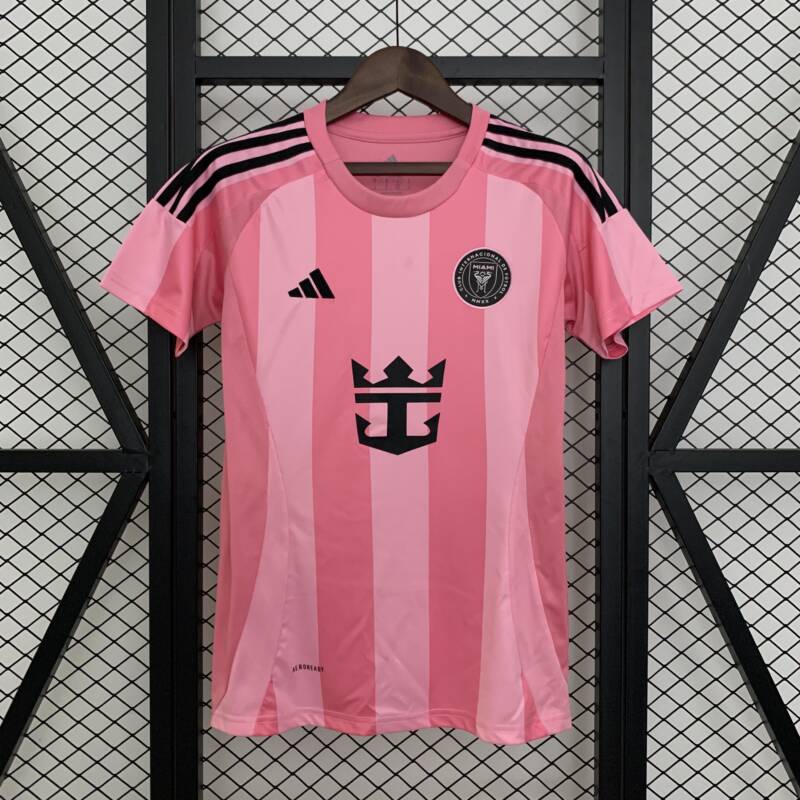 Inspirada en el glamour de Miami y el orgullo por el fútbol, la nueva camiseta femenina de la temporada 2025-2026 destaca por su inconfundible color rosa claro, símbolo de identidad del club 🌸. Diseñada exclusivamente para mujeres, presenta un corte entallado que realza la figura sin sacrificar comodidad 💃✨.