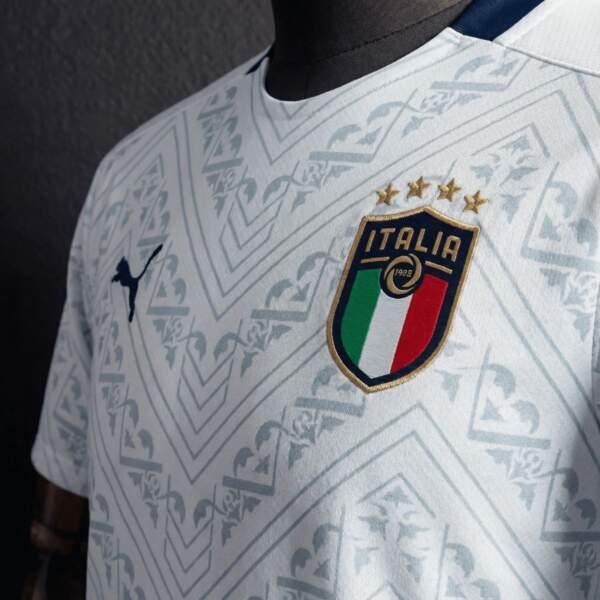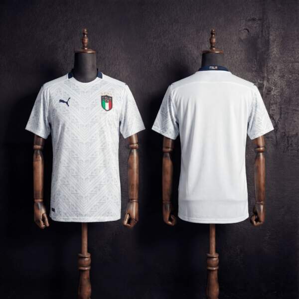 Camiseta Italia Visitante Retro 2020 con acabado blanco sofisticado y detalles clásicos que representan la tradición de la Azzurra.