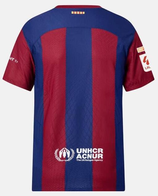 La Camiseta FC Barcelona primera equipación 2023/2024 para mujer es la prenda perfecta para las verdaderas aficionadas culés. Su diseño impecable combina los colores icónicos del club.