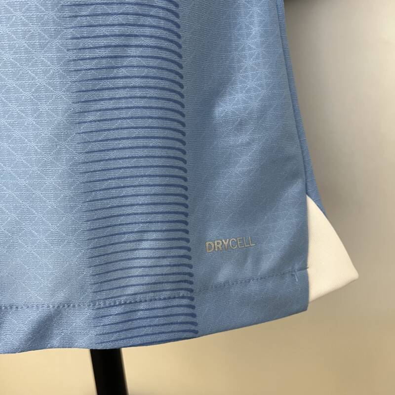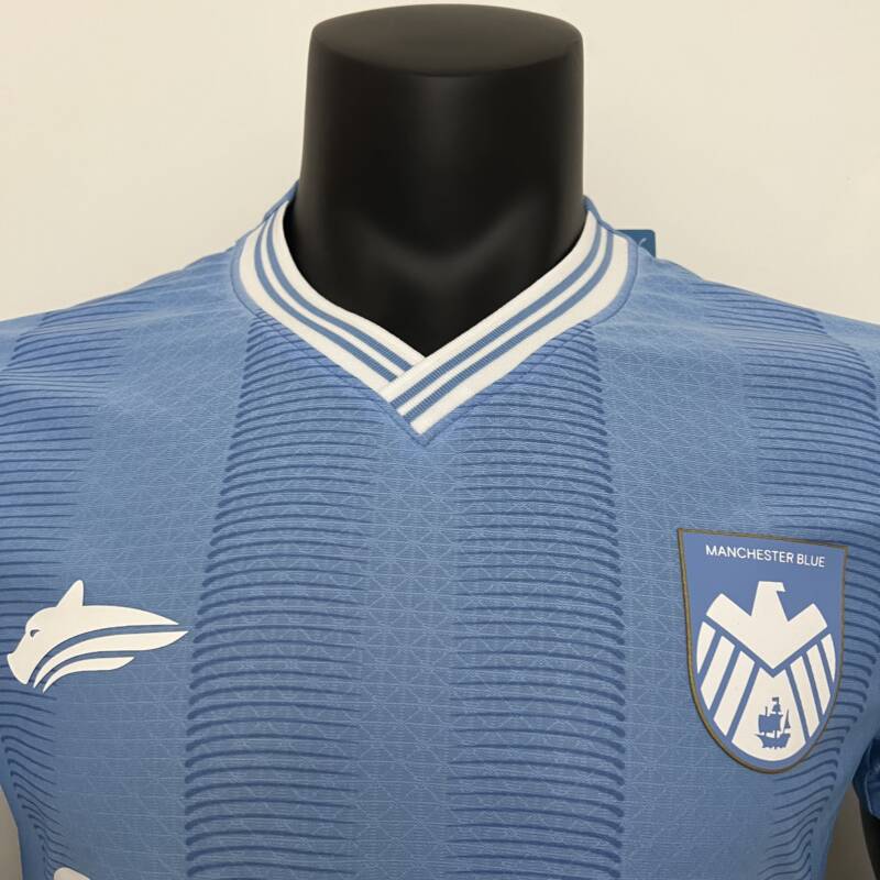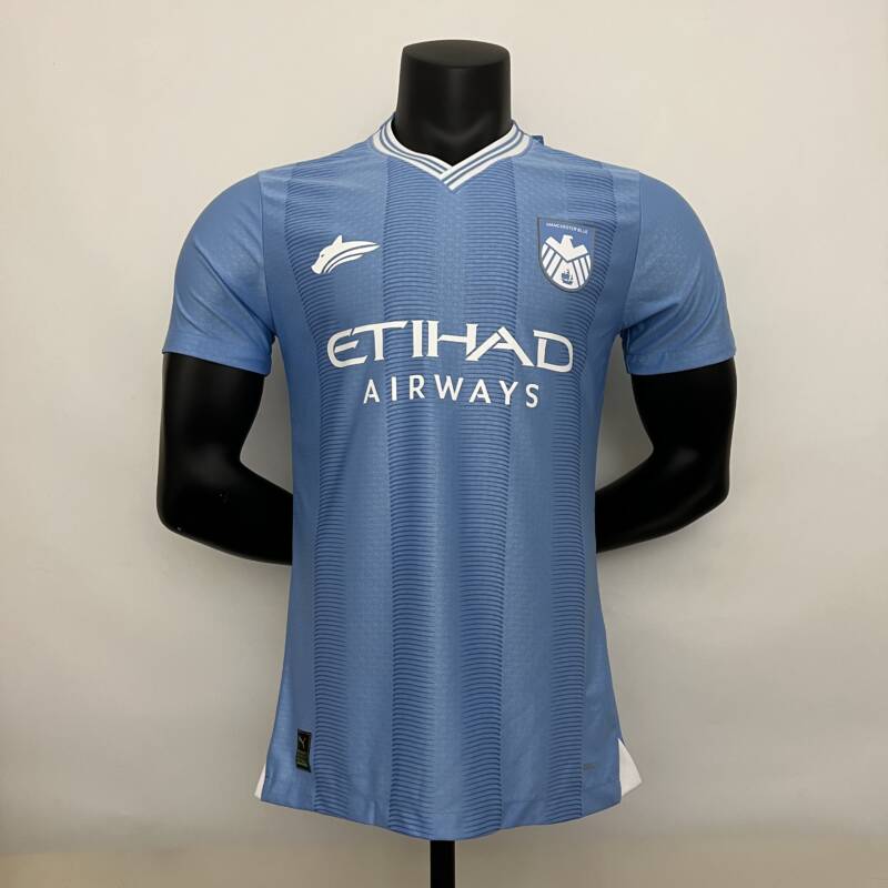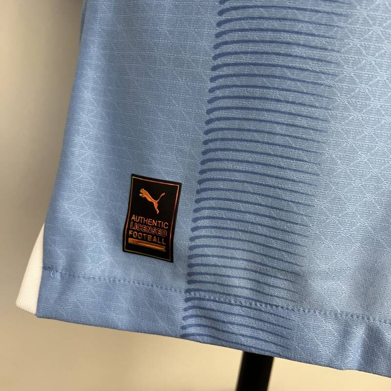 ¡La nueva camiseta local versión jugador del Manchester City para la temporada 2023/2024 será la próxima equipación que lucirá todo el equipo! Esta camiseta tiene aires retro, presenta un cuello blanco en V rodeadas con dos líneas azul oscuro, el escudo del club vuelve estar en el lado derecho y el logo en el izquierdo, asimismo el patrocinador permanece en el centro, presenta un estilo único que hará que te sientas como un verdadero jugador del Manchester City.