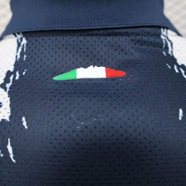 Nombre y dorsal lucen nítidos sobre el azul marino con brochazos.
