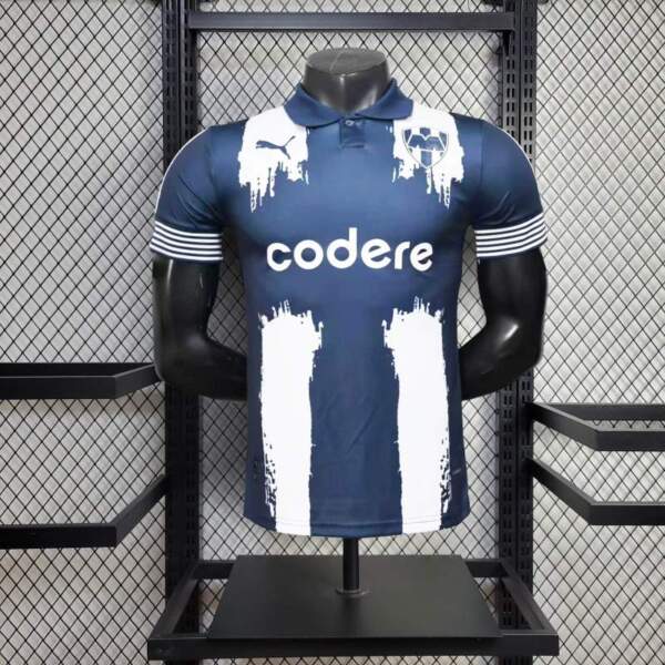 Escudo de Rayados en el pecho, versión bicolor de alta definición.