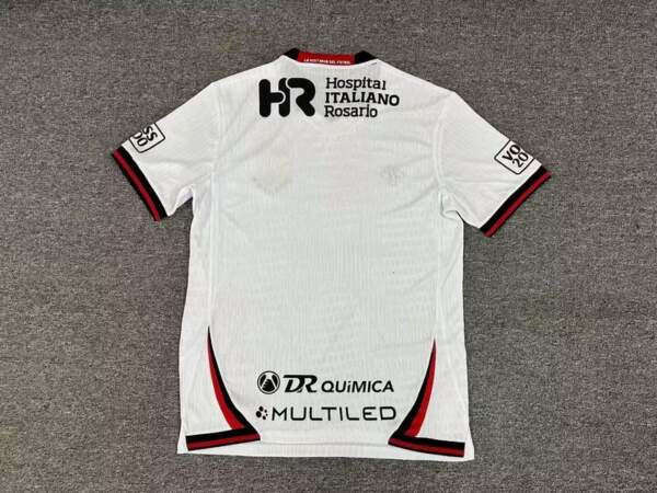 La Camiseta Newell’s Old Boys Visitante 2025-2026 luce un diseño blanco elegante con detalles en negro y rojo en cuello y mangas, ofreciendo un estilo moderno y sobrio para los aficionados.