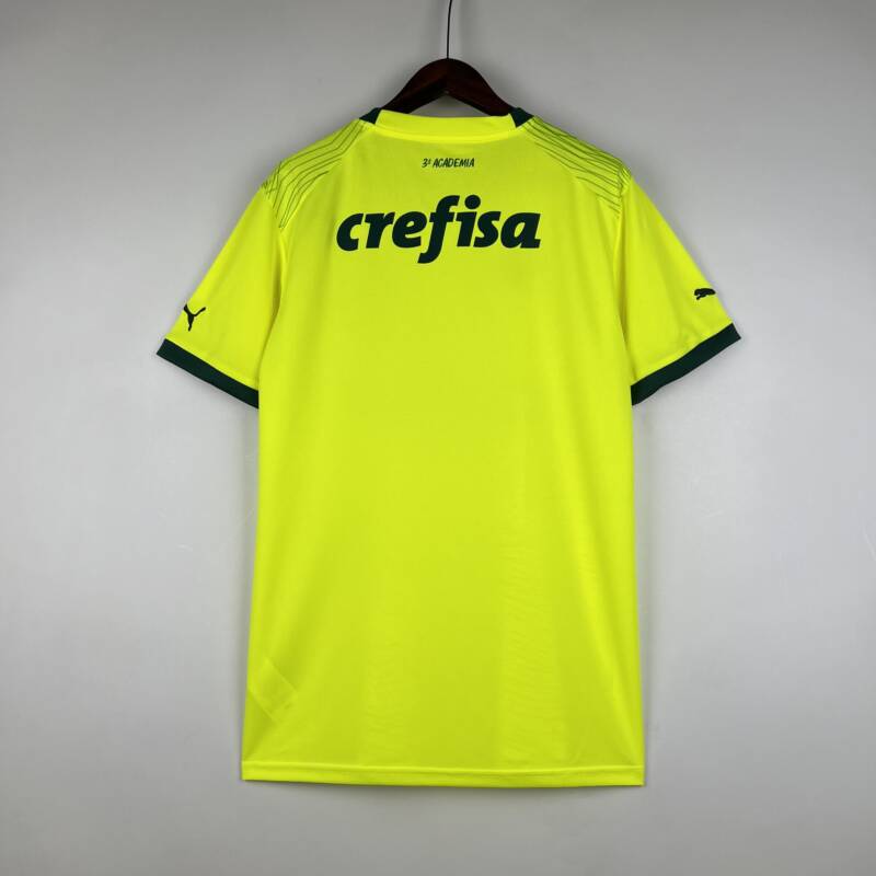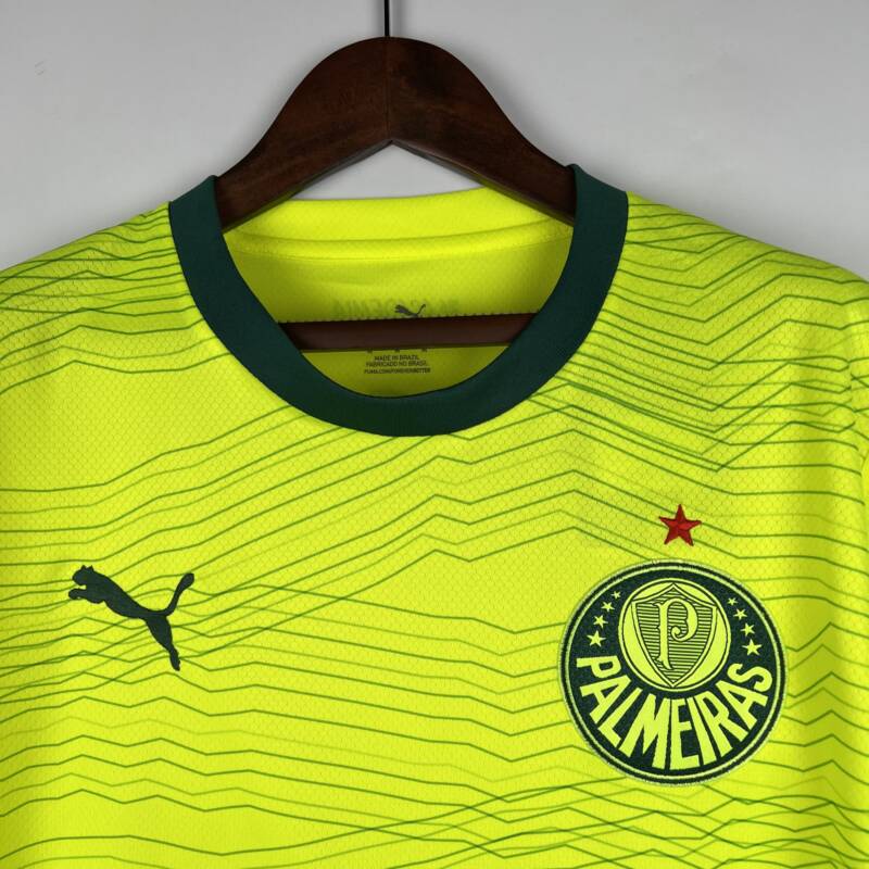 La camiseta del Palmeiras se destaca por su diseño único y emblemático. El amarillo flúor es un verdadero llamado de atención, y los toques de verde en el cuello y las mangas le dan un toque clásico y auténtico. Ya sea que estés en el estadio, viendo el partido en casa o paseando por la ciudad, esta camiseta te hará sentir parte del equipo en todo momento. Además, su estilo versátil te permite combinarla fácilmente con tu ropa casual favorita, convirtiéndola en una prenda esencial para cualquier fanático.