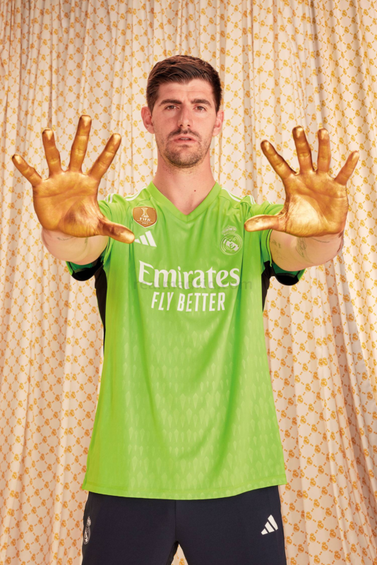 El verde dominante en esta Camiseta de Portero Real Madrid para Niño. Los detalles importan, y esta camiseta lo demuestra con su cuello con bordes en tonos verdes que añaden un toque de sofisticación. Las franjas blancas en los hombros no solo son un símbolo de grandeza, sino también un elemento que resalta en el campo.