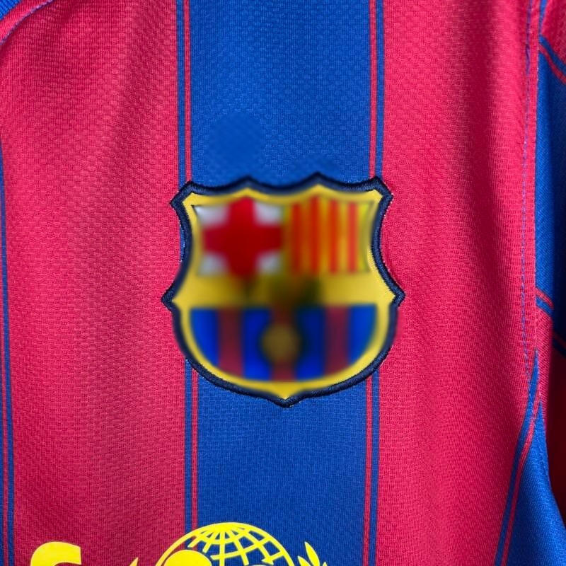 Con sus rayas verticales en azul y rojo, evoca la pasión y el espíritu indomable del club. Los detalles en amarillo en el cuello y las mangas añaden un toque vibrante. Además, lleva el icónico logo de la marca, el gran escudo del club y el patrocinador.