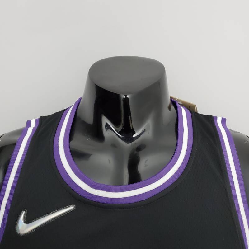 La camiseta Sacramento Kings negra City es la expresión tangible de la grandeza del equipo. Su diseño meticuloso fusiona la elegancia del negro con toques vibrantes de morado y blanco en los bordes de la manga y cuello. Cada detalle cuenta una historia, desde los intrincados patrones hasta los elementos gráficos que rinden homenaje a la rica tradición del equipo