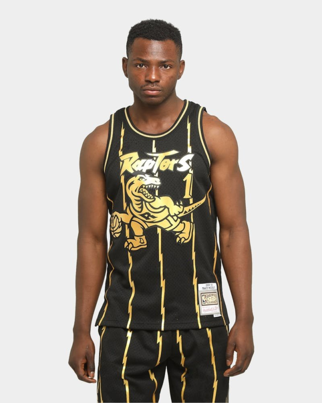 Con la Camiseta Raptors Negra y Dorada