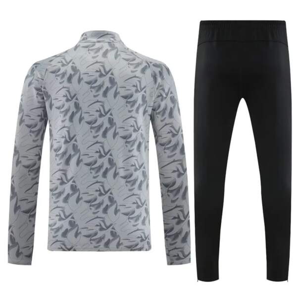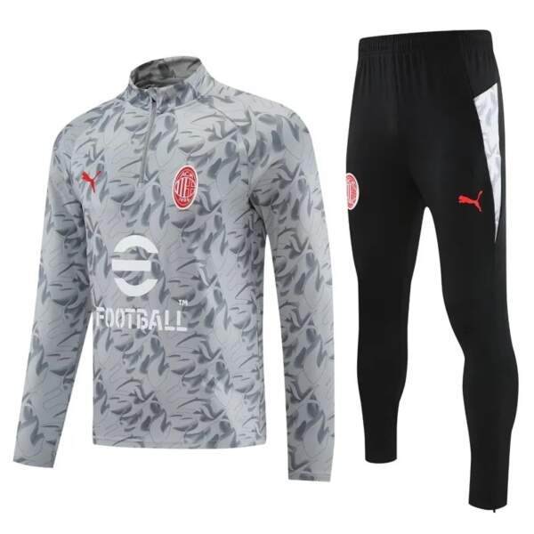 Chándal AC Milan Entrenamiento 2025/2026 con top gris estampado y pantalón negro ajustado, una combinación técnica y moderna para entrenar como los rossoneri.
