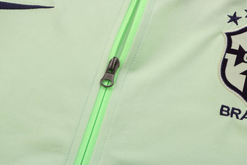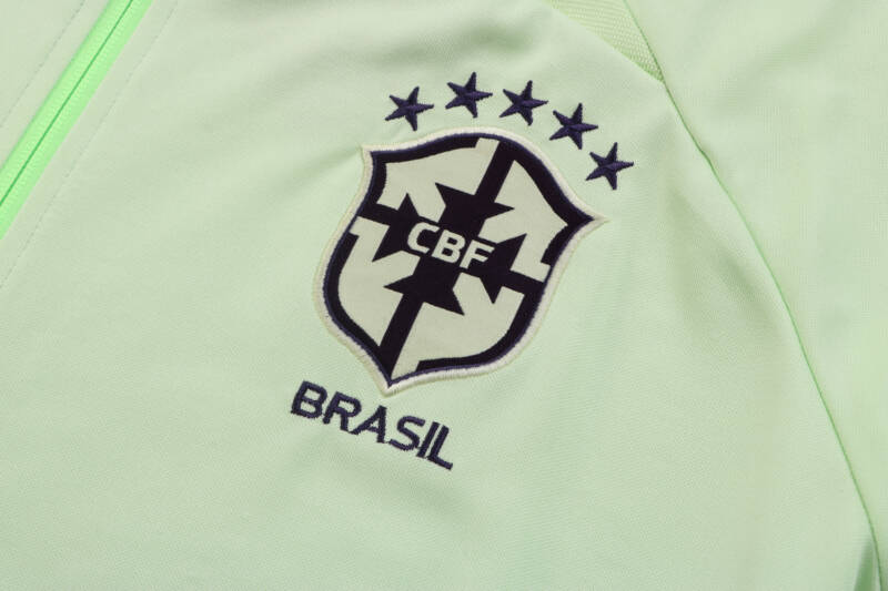 Extraordinario conjunto de chándal en verde hierba, presenta un acado excelente en las mangas. Su estructura está fabricado en tejido de poliéster con una tecnología de secado rápido transpirable que capilariza el sudor durante la actividad física, gracias a ello, te sentirás muy cómodo y podrás desenvolverte con frescura y total libertad. La chaqueta presenta corte entallado que se ajusta al tronco y los brazos, cierra con una cremallera frontal; el pantalón se sujeta con elástico en la cintura más los bolsillos laterales y cremalleras en el tobillo, para completar el diseño de este conjunto deportivo posee el gran escudo bordado de la Confederación Brasileña de Fútbol. ¡Increíble!