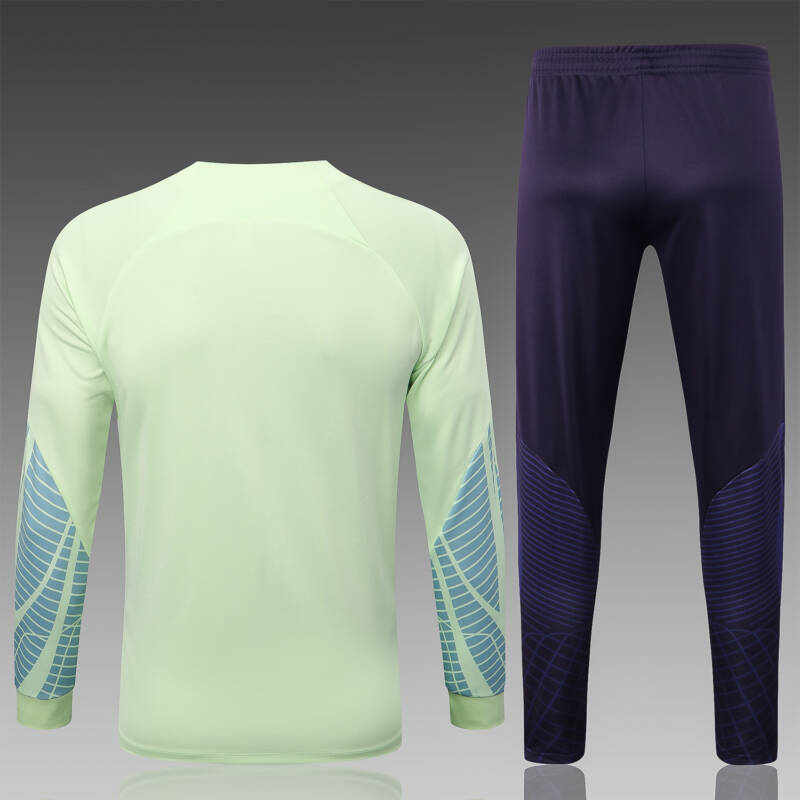 Extraordinario conjunto de chándal en verde hierba, presenta un acado excelente en las mangas. Su estructura está fabricado en tejido de poliéster con una tecnología de secado rápido transpirable que capilariza el sudor durante la actividad física, gracias a ello, te sentirás muy cómodo y podrás desenvolverte con frescura y total libertad.