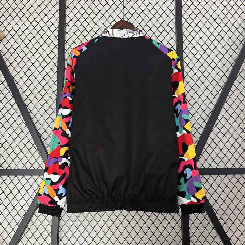Sumérgete en la leyenda del Manchester United con nuestra chaqueta reversible. Diseño dual que fusiona la elegancia del blanco con la fuerza del negro. Bordados impecables, materiales premium. No es solo una prenda, es tu conexión con la grandeza futbolística.