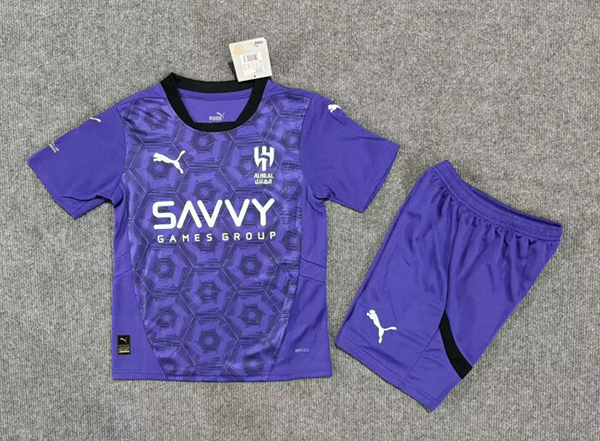 ¡Estilo y Pasión en Púrpura! 🌟 Conjunto Niño Al Hilal Tercera Visitante 2024-2025 💜👕