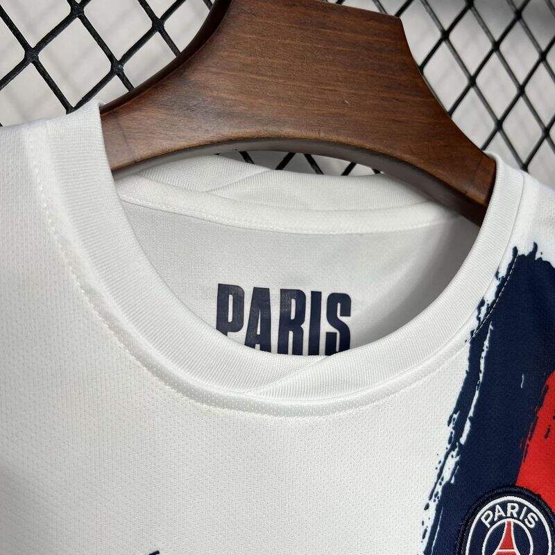 Con el icónico azul eléctrico del PSG y detalles en rojo y blanco, este conjunto captura la esencia vibrante y emocionante del París Saint-Germain. Cada elemento está meticulosamente diseñado para reflejar la rica historia del club, fusionando tradición con un estilo contemporáneo que resalta en cualquier campo de juego o callejón.