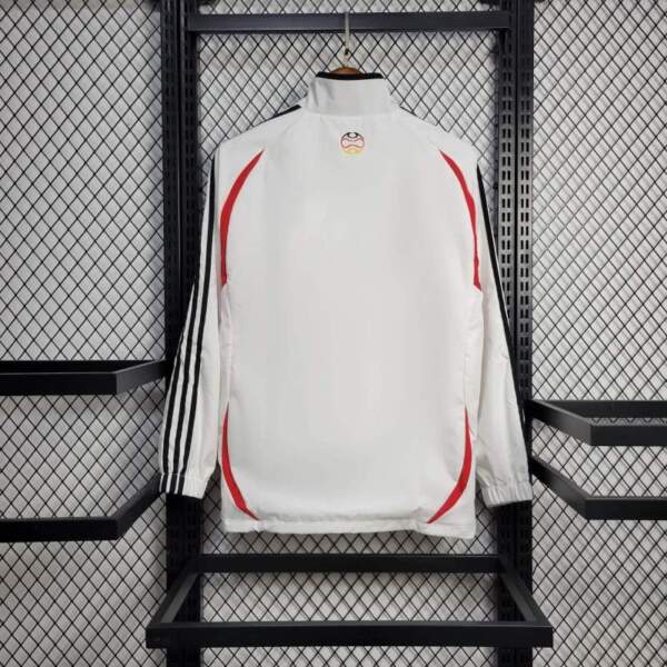 Este cortaviento es una elección acertada para quienes quieren vestir con estilo futbolero moderno, manteniéndose protegidos del viento y destacando con una prenda actual inspirada en Alemania.