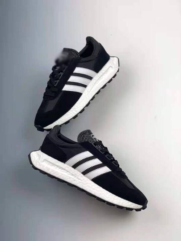 Esta zapatilla Retropy E5 con estilo luce un diseño inspirado en nuestros modelos de running de los 80. Se actualiza con un toque versátil y moderno que combina con cualquier look. Estos tenis en negro y blanco presenta la parte superior textil con refuerzos de gamuza cosidas, diseño a paneles, detalle característico de 3 franjas icónicas, logo en el contrafuerte, cierre con los cordones y la mediasuela BOOST que te ofrece una pisada más cómoda de mañana a noche.